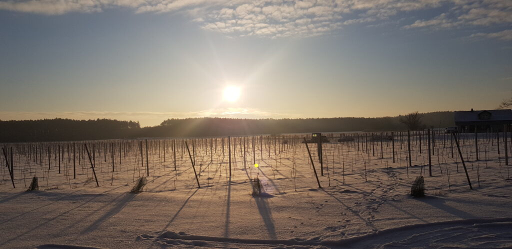 Winnica SŁONE to rodzinne przedsiębiorstwo położone w malowniczej miejscowości Słone, w województwie lubuskim blisko Zielonej Góry. Ogólny areał gospodarstwa wynosi około 10ha. Całe przedsięwzięcie rozpoczęło się w roku 2017 kiedy to pojawiły się pierwsze plany zagospodarowania terenu oraz idea stworzenia pięknej winnicy. Od tego czasu ściśle realizujemy swoje założenia krok po kroku. Pierwsze nasadzenia miały miejsce w 2018 roku i w miarę obserwacji sukcesywnie były powiększane. To pozwoliło nam zaobserwować jak zachowują się poszczególne odmiany i wybrać te, które będą czuły się u nas jak najlepiej. Główni przedstawiciele Vitis Vinifera na naszym terenie to przede wszystkim Tauberschwarz, Roter Riesling, Cabernet, Pinot Noir, Pinot Gris oraz Traminer.